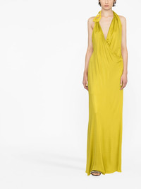draped halterneck maxi dress Tom Ford showcases its minimalist values through tonal design and elegant silhouettes, as seen with this sleek draped maxi dress for SS23. The halterneck garment is quietly embellished with a custom moulded buckle, crafted from chartreuse acrylic glass. Highlights - Chartreuse - Draped design - Halterneck - Low back - Floor-length Made in Italy Composition Viscose 100% SIZE & FIT Model measurements Height 5 ft 10 in(1.78 m) Bust/Chest 30.7 in(78 cm) Hips 34.64 in(88 cm) Waist 23.22 in(59 cm) FittingInformation Designed for a slim fit that sits just away from the body offering a close yet comfortable fit The internal slip sits just away from the body, offering a close yet comfortable fit Made from a midweight non-stretch fabric, this piece offers minimal elasticity when worn This piece fits true to size – take your usual size Washing instructions Dry Clean Only