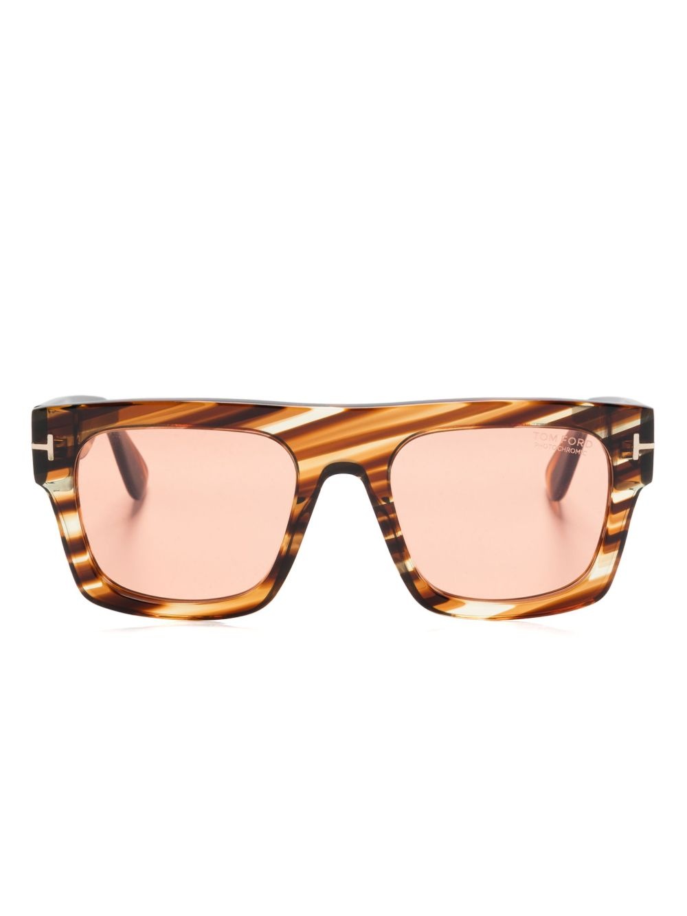 Fausto sunglasses Highlights - Havana brown - Diagonal stripe pattern - Square frame - Orange tinted lenses - Uv-protective lenses - Logo lens decal - Raised bridge - Straight arms - Curved tips - Logo plaque to the tip - These glasses come with a protective case. Made in Italy Composition Acetate 100% SIZE & FIT Measurement Total Width 5.7 in(14.5 cm) Lens Diameter 2.08 in(5.3 cm) Bridge Width 0.78 in(2 cm) Arm Length 5.7 in(14.5 cm)