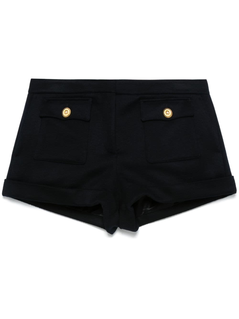 felted shorts Highlights - Midnight blue - Virgin wool-cashmere blend - Felted - Concealed front button, hook and zip fastening - Two diagonal pockets to the sides - Two front flap pockets - Two rear jetted pockets Made In Italy Composition Lining: Cotton 56%, Viscose 44% Outer: Virgin Wool 80%, Cashmere 20% SIZE & FIT Model measurements Height 5 ft 10 in(1.77 m) Bust/Chest 33.07 in(84 cm) Hips 37 in(94 cm) Waist 24.8 in(63 cm) FittingInformation Designed for a slim fit that sits just away from the body offering a close yet comfortable fit Made from a midweight non-stretch fabric This piece fits large – take one size down