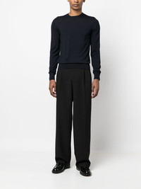 fine-knit wool jumper navy blue wool fine knit ribbed trim crew neck long sleeves straight hem Made in Italy Composition Wool 100% SIZE & FIT Model measurements Height 6 ft 2 in(1.87 m) Bust/Chest 37 in(94 cm) Hips 33.85 in(86 cm) Waist 27.95 in(71 cm) Measurement CHEST 44.09 in(112 cm) SLEEVE LENGTH 36.22 in(92 cm) LENGTH 26.77 in(68 cm) Washing instructions Dry Clean Only