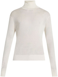 fine-ribbed jumper Highlights - White - Silk blend - Fine ribbed - Roll neck - Long sleeves Made in Italy Composition Silk 50%, Viscose 50% Washing instructions Read Manufacturer Guidelines