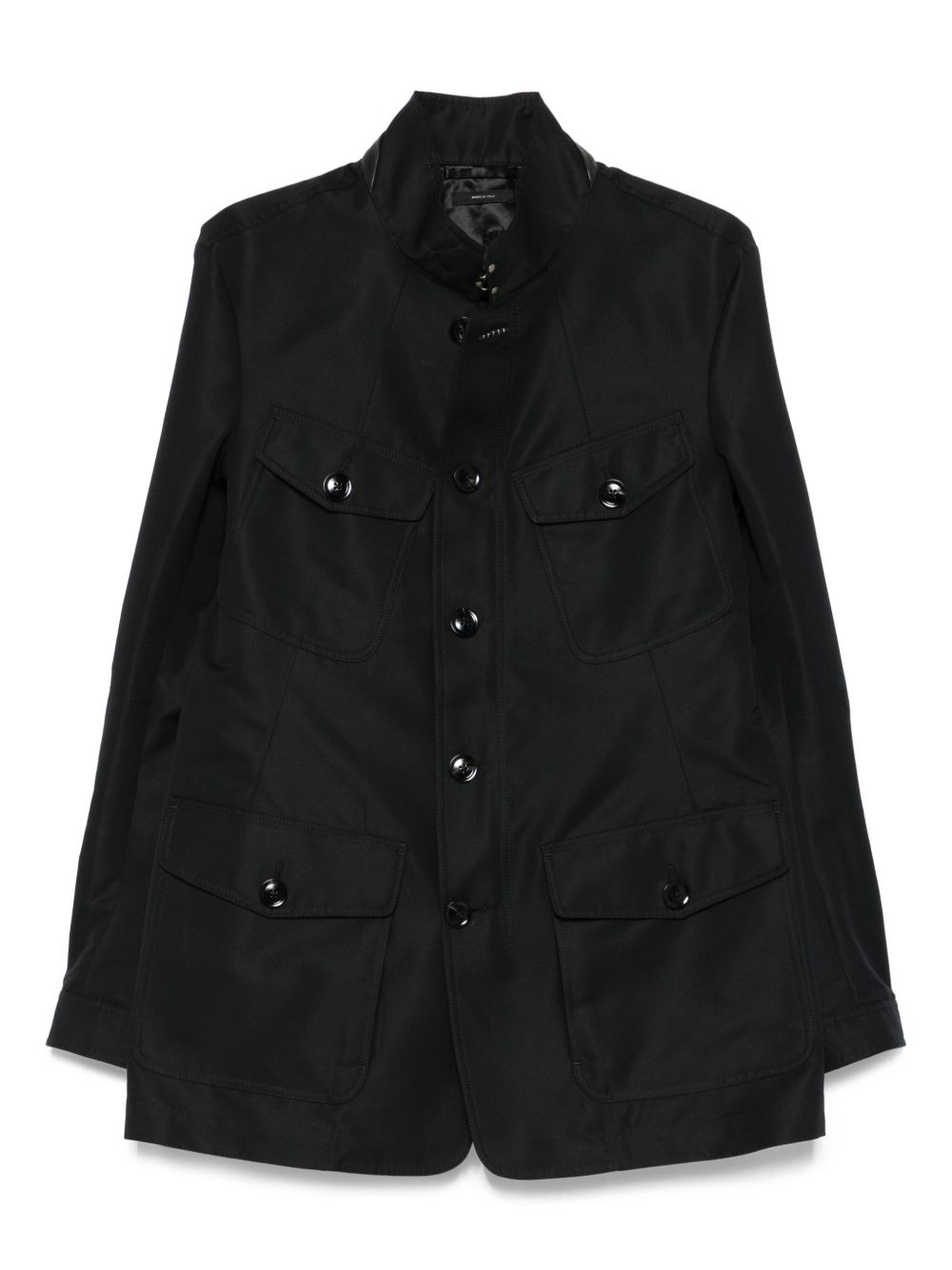 flap-pocket jacket Highlights - Black - Button fastening - Flap pockets - Polo collar - Long sleeves - Flap pockets Made in Italy Composition Outer: Bos Taurus 100%, Cotton 62%, Polyester 38% Lining: Cotton 56%, Viscose 44% SIZE & FIT Model measurements Height 6 ft 2 in(1.87 m) Bust/Chest 37.79 in(96 cm) Hips 37.79 in(96 cm) Waist 30.31 in(77 cm) Washing instructions Dry Clean Only
