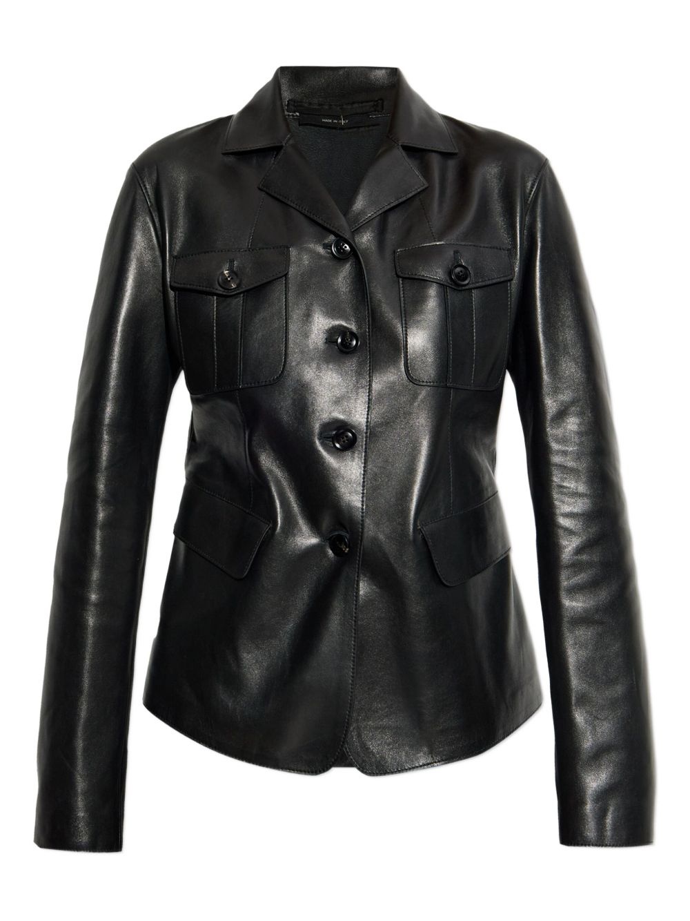 flap-pocket leather jacket Highlights - Black - Lambskin leather - Button fastening - Flap pockets - Long sleeves Made in Italy Composition Leather 100% Washing instructions Read Manufacturer Guidelines