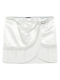 fringed-hem mini skirt Highlights - Grey - Side buckle fastening - Pleat detailing Made in Italy Composition Outer: Acetate 100%, Bos Taurus 100%, Cotton 77%, Silk 23% Lining: Silk 100% SIZE & FIT Model measurements Height 5 ft 9 in(1.76 m) Bust/Chest 31.88 in(81 cm) Hips 35.43 in(90 cm) Waist 24.8 in(63 cm) FittingInformation Designed for a wraparound style that can be adjusted to your preference Made from a midweight non-stretch fabric