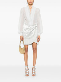 WRAP MINI SKIRT WITH LEATHER DETAIL AND FRINGES