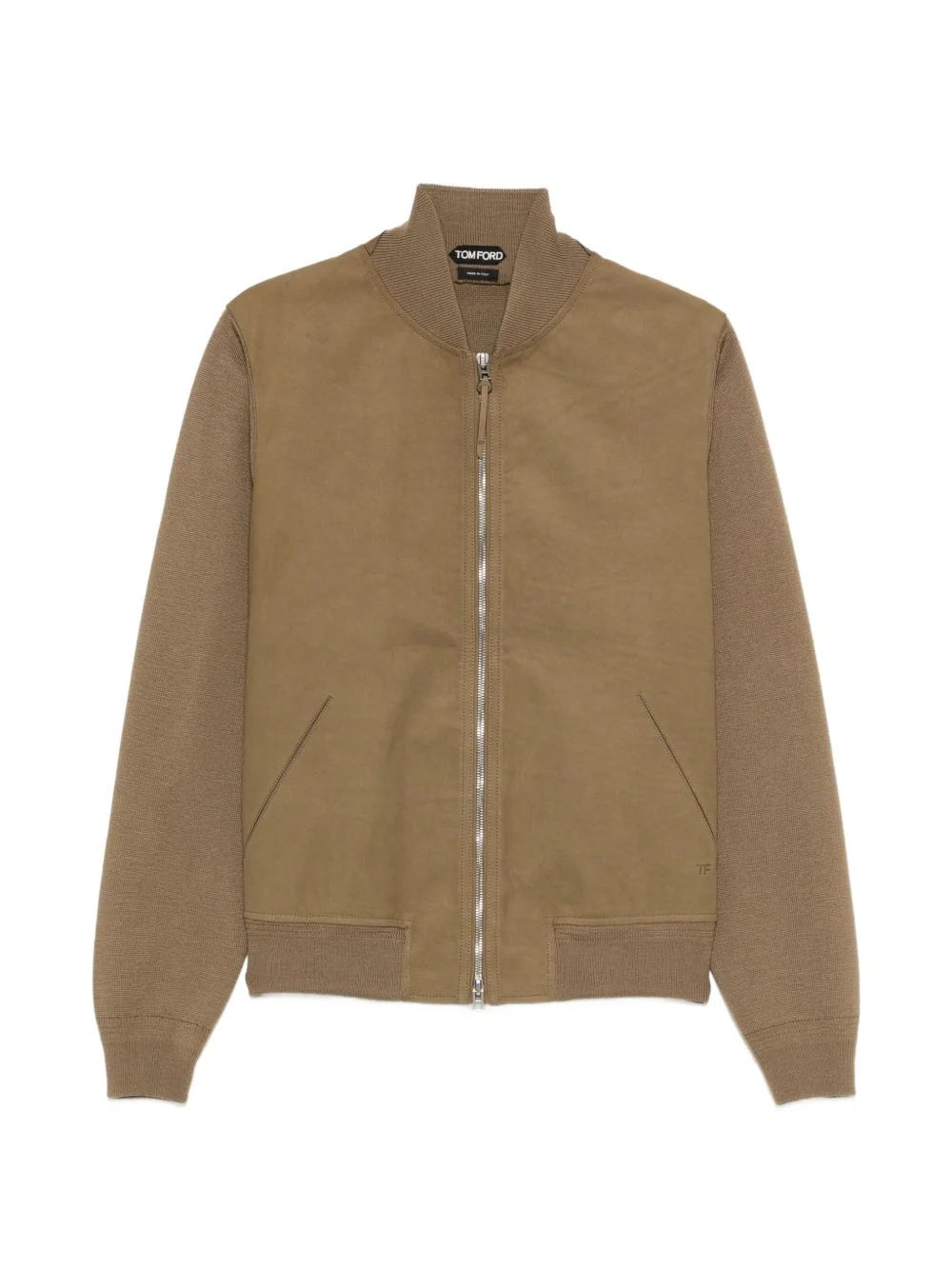 front merino bomber jacket Highlights - Olive green - Zip fastening - Rib knit details - Front pockets - Long sleeves Made in Italy Composition Lining: Cotton 100% Outer: Calf Suede 100% Washing instructions Read Manufacturer Guidelines