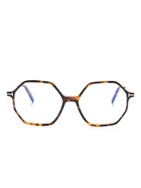 geometric-frame glasses Highlights - Havana brown - Acetate - Tortoiseshell effect - Geometric frame - Blue-light filtering lenses - Logo-engraved arm - Straight arms with curved tips - These glasses come with a protective case. - All glasses from farfetch are sold as non-prescription frames. Made in Italy Composition Acetate 100% SIZE & FIT Measurement Arm Length 5.51 in(14 cm) Bridge Width 0.62 in(1.6 cm) Lens Diameter 2.12 in(5.4 cm) Total Width 5.51 in(14 cm)