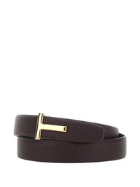 grained leather T-buckle belt