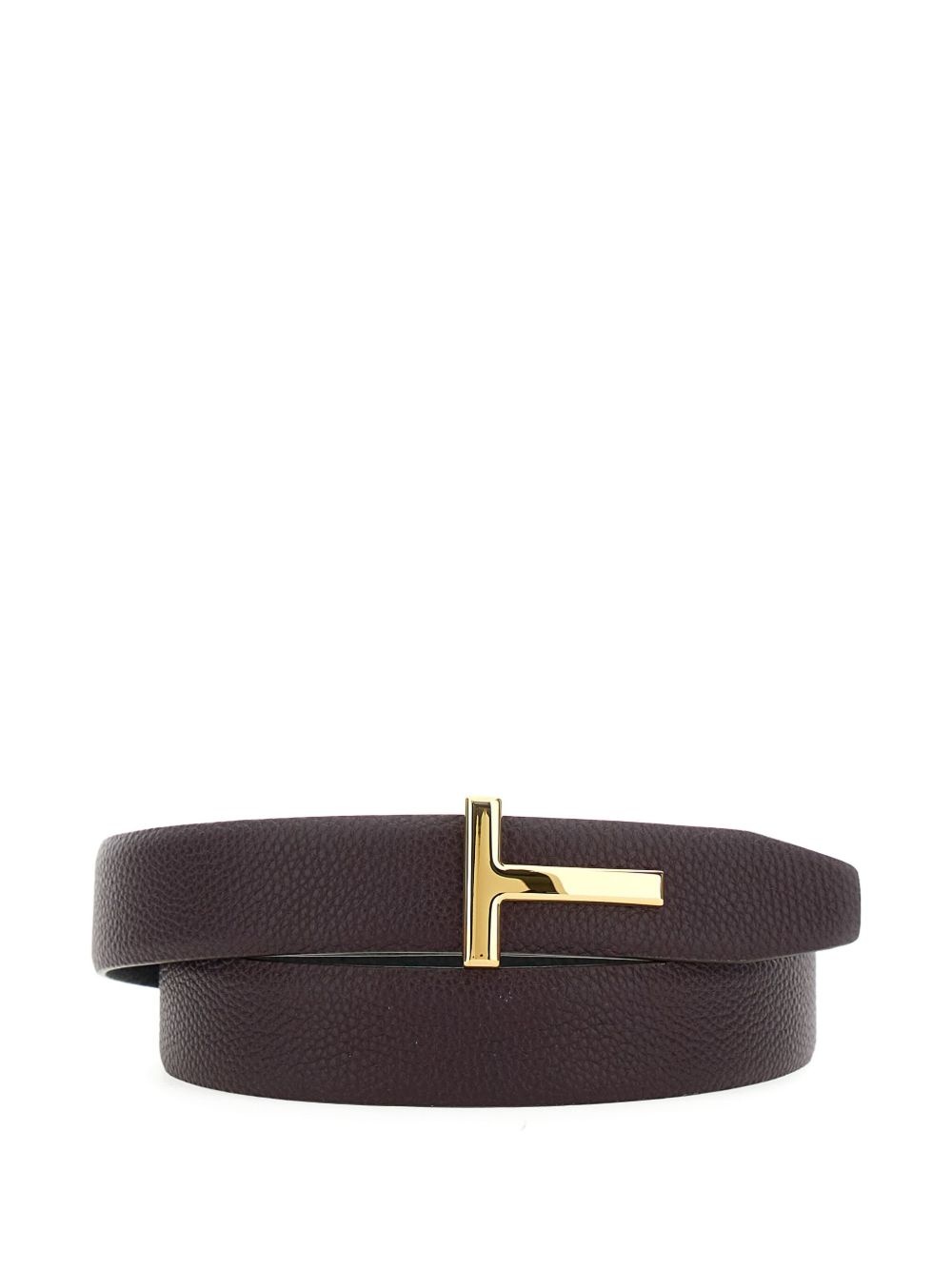 grained leather T-buckle belt Highlights - Burgundy - Grained leather - T-buckle closure - Reversible Made in Italy Composition Calf Leather 100% SIZE & FIT Measurement WIDTH 1.18 in(3 cm)