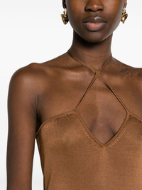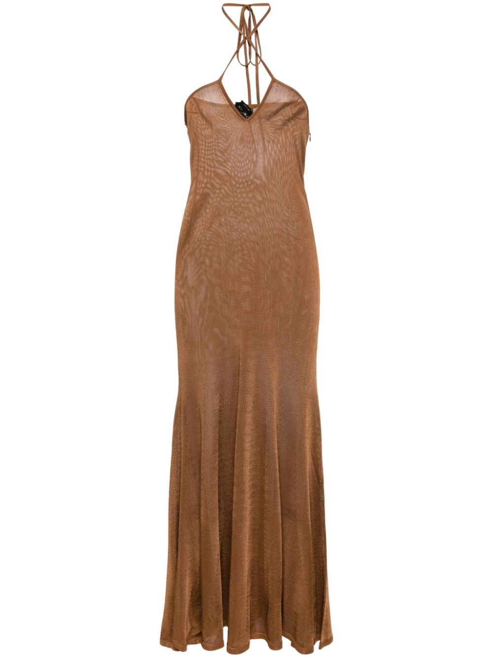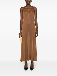 halterneck flared maxi dress Highlights - Caramel brown - Textured finish - Keyhole neck - Halterneck tie fastening - Side zip fastening - Sleeveless - Flared hem - Ankle-length Made in Italy Composition Viscose 100% SIZE & FIT Model measurements Height 5 ft 11 in(1.8 m) Bust/Chest 32.67 in(83 cm) Hips 36.22 in(92 cm) Waist 24.4 in(62 cm) Measurement LENGTH 46.45 in(118 cm) WAIST 34.64 in(88 cm) HIPS 39.37 in(100 cm) Washing instructions Dry Clean Only