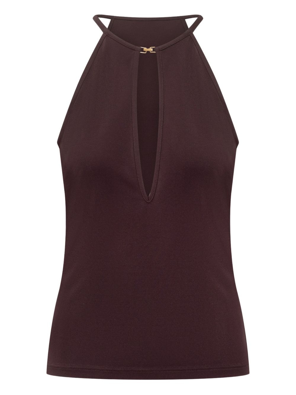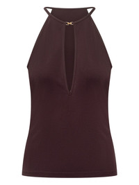 halterneck jersey top Highlights - Chcolate brown - Halterneck - Keyhole detail - Sleeveless - Straight hem Made in Italy Composition Viscose 100% Washing instructions Read Manufacturer Guidelines