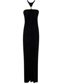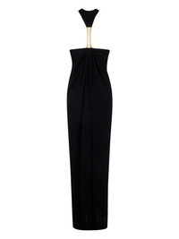 HALTERNECK EVENING DRESS WITH METAL HARDWARE DETAIL