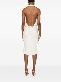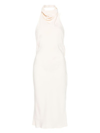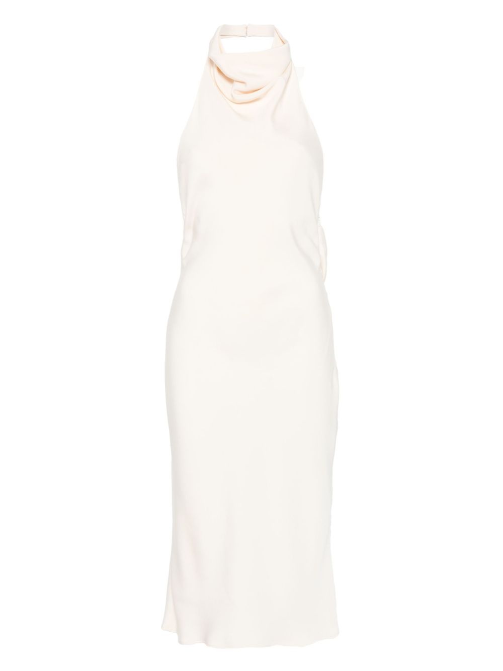 halterneck sleeveless midi dress Highlights - Light beige - Rear hook fastening - Open back - Draped detailing - Mid-length Made in Italy Composition Silk 100% SIZE & FIT Model measurements Height 5 ft 11 in(1.8 m) Bust/Chest 31.49 in(80 cm) Hips 36.61 in(93 cm) Waist 24.4 in(62 cm) FittingInformation Designed for a slim fit that sits just away from the body offering a close yet comfortable fit Made from a midweight non-stretch fabric Washing instructions Dry Clean Only