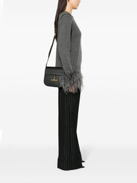 Hanging-T-hardware leather bag TOM FORD’s Tara bag is evocative of the label’s refined aesthetic. Made from black grained leather, the structured silhouette is minimally detailed with a T-shaped charm rendered in polished gold-tone hardware. Highlights - Black - Calf leather - Grained texture - Signature hanging t hardware - Logo-engraved gold-tone hardware - Internal logo stamp - Foldover top with magnetic fastening - Adjustable shoulder strap - Main compartment - Internal zip-fastening pocket - Faux-leather lining - This piece comes complete with a protective dust bag. Made in Italy Composition Outer: Calf Leather 100% Lining: Polyamide 60%, Polyurethane 40% SIZE & FIT Model measurements Height 5 ft 10 in(1.78 m) Bust/Chest 33.46 in(85 cm) Hips 35.43 in(90 cm) Waist 24.4 in(62 cm) Measurement DEPTH 2.36 in(6 cm) HEIGHT 7.08 in(18 cm) WIDTH 7.67 in(19.5 cm)