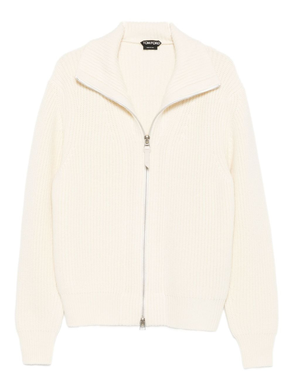 high-neck zip-front sweater Highlights - Off-white - Ribbed knit - Zip fastening - High neck - Long sleeves - Regular cuffs Made in Italy Composition Wool 85%, Mohair 15% SIZE & FIT Model measurements Height 6 ft 1 in(1.85 m) Bust/Chest 35.82 in(91 cm) Hips 37.79 in(96 cm) Waist 29.13 in(74 cm) Washing instructions Dry Clean Only