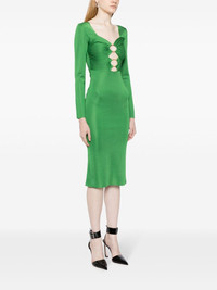high-shine cut-out midi dress Tom Ford presents a contemporary take on garments with this dress for AW23. Rendered in a bold-green hue, it is characterised by the cut-out detailing to the front for a modern finish. Highlights - Emerald green - High-shine finish - Stretch-design - Cut-out detailing - Sweetheart neck - Side zip fastening - Long sleeves - Below-knee length - Straight hem Made in Italy Composition Viscose 100% SIZE & FIT Model measurements Height 5 ft 10 in(1.78 m) Bust/Chest 29.13 in(74 cm) Hips 35.43 in(90 cm) Waist 23.62 in(60 cm) FittingInformation Designed for a slim fit that sits just away from the body offering a close yet comfortable fit Made from a midweight non-stretch fabric, this piece offers minimal elasticity when worn This piece fits true to size – take your usual size Washing instructions Dry Clean Only
