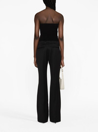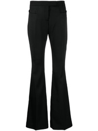 high-waist wool flared trousers TOM FORD spotlights its tailoring prowess with these black wool trousers. They’re designed to sit high at the waist and fall to a slim flared silhouette enhanced with pressed creases. Highlights - Black - Virgin wool - High-waisted - Concealed front fastening - Two front welt pockets - Two rear jetted pockets - Flared Made in Italy Composition Outer: Virgin Wool 100% Lining: Viscose 54%, Polyester 46% SIZE & FIT Model measurements Height 5 ft 11 in(1.8 m) Bust/Chest 34.25 in(87 cm) Hips 35.82 in(91 cm) Waist 24.8 in(63 cm) Measurement FRONT RISE 9.44 in(24 cm) HIPS 39.37 in(100 cm) WAIST 31.49 in(80 cm) FittingInformation Designed with a flared hem, these trousers allow for a close fit at the waist with a slim fit over the leg and widening towards the hem Made from a midweight non-stretch fabric This piece fits true to size – take your usual size