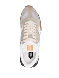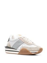 James chunky platform sneakers TOM FORD’s James sneakers are characterised by their sleek silhouette and extended midsole. Resting atop a signature platform sole, this pair features a panelled upper with contrasting suede accents and a small logo print at the sidewall. Highlights - Silver-tone/taupe brown - Calf leather - Suede panels - Micro-mesh panels - Logo patch at the tongue - Logo print to the side - Contrasting branded heel counter - Front lace-up fastening - Almond toe - Branded insole - Platform wedge - Chunky rubber sole Made in Italy Composition Outer: Calf Leather 100%, Polyamide 100% Sole: Rubber 100% Lining: Fabric 100% SIZE & FIT Measurement HEEL 1.65 in(4.2 cm) Sole height 1.06 in(2.7 cm)