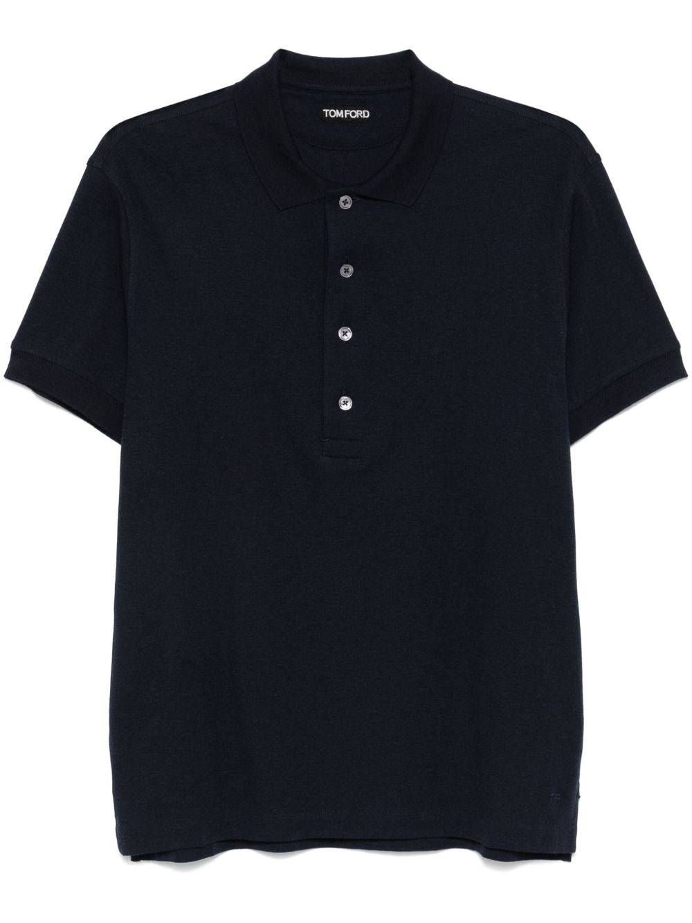 jersey polo shirt Highlights - Navy blue - Front button placket - Short sleeves Imported Composition Cotton 50%, Cashmere 30%, Silk 20% SIZE & FIT Model measurements Height 6 ft 1 in(1.85 m) Bust/Chest 35.82 in(91 cm) Hips 37.79 in(96 cm) Waist 29.13 in(74 cm) FittingInformation Designed for a slim fit, this polo shirt offers a comfortable fit that sits just away from the body Made from a midweight non-stretch fabric, this piece offers minimal elasticity when worn