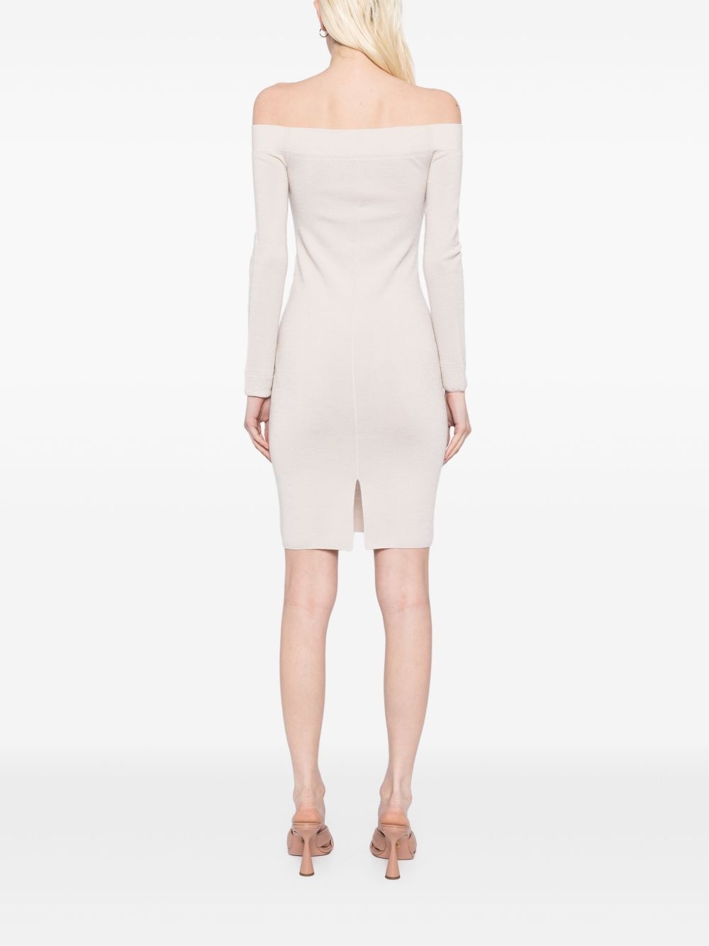 knitted dress Highlights - Off-white - Off-shoulder - Ribbed cuffs - Stretch-jersey Made in Italy Composition Cashmere 70%, Silk 30% SIZE & FIT Model measurements Height 5 ft 9 in(1.76 m) Bust/Chest 31.1 in(79 cm) Hips 35.03 in(89 cm) Waist 24.4 in(62 cm) FittingInformation Designed for a close fit throughout The vented hem offers movement at the rear Made with a midweight knit, this piece offers some stretch