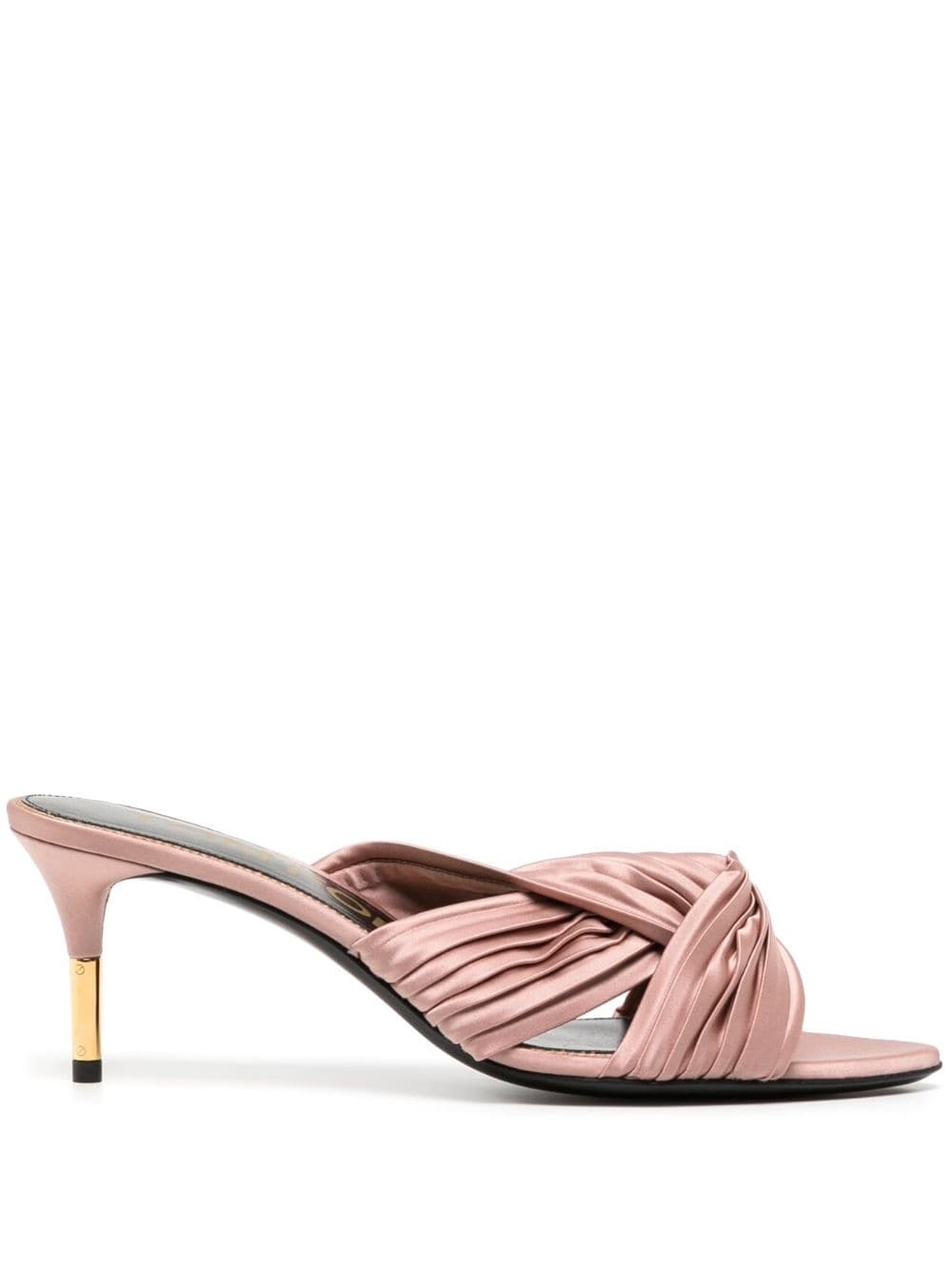 75mm knot-detail pleated sandals Highlights - Dust pink - Calf leather - Satin finish - Fully pleated - Knot detailing - Open toe - Pointed toe - Branded footbed - Mid heel - Slip-on style Made in Italy Composition Lining: Calf Leather 100%, Polyester 100% Sole: Calf Leather 100% Outer: Polyester 100%, Brass 100% SIZE & FIT Measurement HEEL 2.36 in(6 cm)