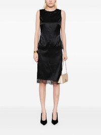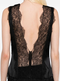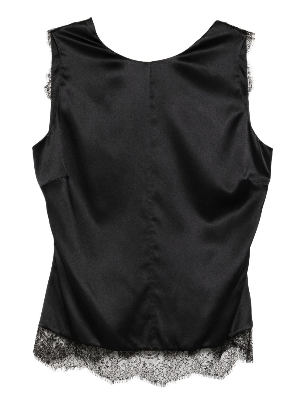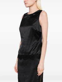 lace-trimmed satin top Highlights - Black - Concealed side hook and zip fastening - Sleeveless - Round neck - Lace trim Made in Italy Composition Silk 93%, Elastane 7% SIZE & FIT Model measurements Height 5 ft 9 in(1.76 m) Bust/Chest 31.1 in(79 cm) Hips 35.03 in(89 cm) Waist 24.4 in(62 cm) FittingInformation Designed for a slim fit that sits just away from the body offering a close yet comfortable fit Made from a midweight non-stretch fabric Washing instructions Dry Clean Only