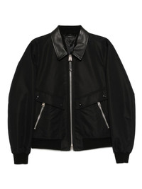 NYLON LEATHER COLLAR BOMBER