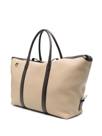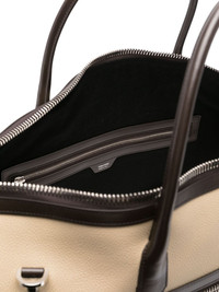 leather holdall Highlights - Sand beige - Top zip fastening - Two rolled top handles - Adjustable detachable shoulder strap - D-ring findings Made in Italy Composition Outer: Bos Taurus 100%, Brass 100% Lining: Cotton 90%, Acrylic 10% SIZE & FIT Measurement DEPTH 8.66 in(22 cm) HANDLE 8.66 in(22 cm) HEIGHT 15.35 in(39 cm) WIDTH 27.55 in(70 cm)