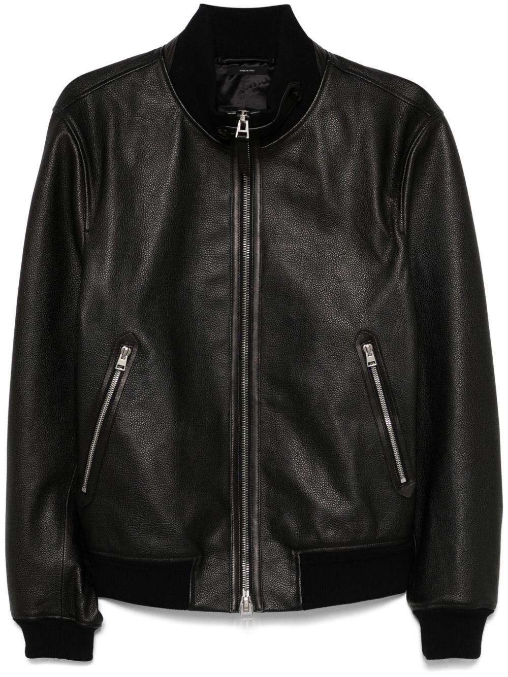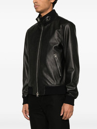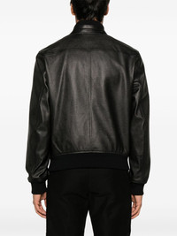 leather jacket Highlights - Black - Front two-way zip fastening - Ribbed cuffs and hem - Two side zip-fastening pockets - Internal jetted pocket Made in Italy Composition Outer: Lamb Skin 100%, Bos Taurus 100%, Virgin Wool 92%, Polyamide 7%, Elastane 1% Lining: Cotton 56%, Viscose 44% SIZE & FIT Model measurements Height 6 ft 2 in(1.89 m) Bust/Chest 35.03 in(89 cm) Hips 38.18 in(97 cm) Waist 29.92 in(76 cm) FittingInformation Designed for a slim fit, offering a comfortable fit that sits just away from the body The ribbed hem offers a close, comfortable fit Firm leather offering little flexibility to maintain its durability and sturdiness