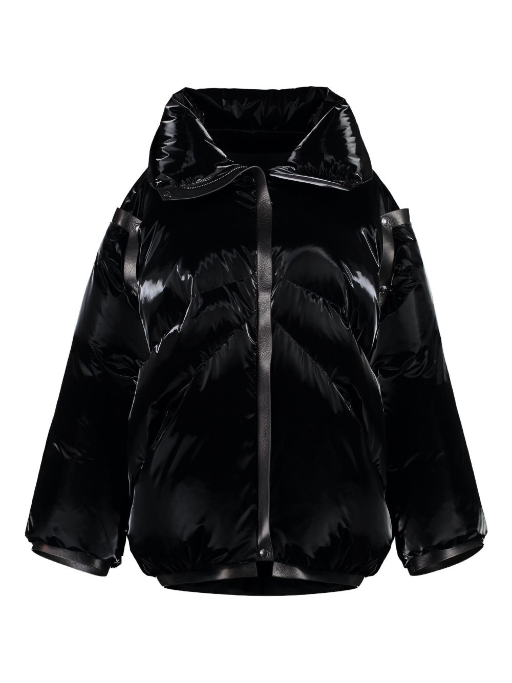 leather padded jacket Highlights - Black - Glossy finish - Long sleeves - Padded design - High collar - Side pockets Made in Italy Composition Outer: Lamb Skin 100%, Polyester 63%, Polyurethane 37% Lining: Down 90%, Feather 10% Washing instructions Read Manufacturer Guidelines