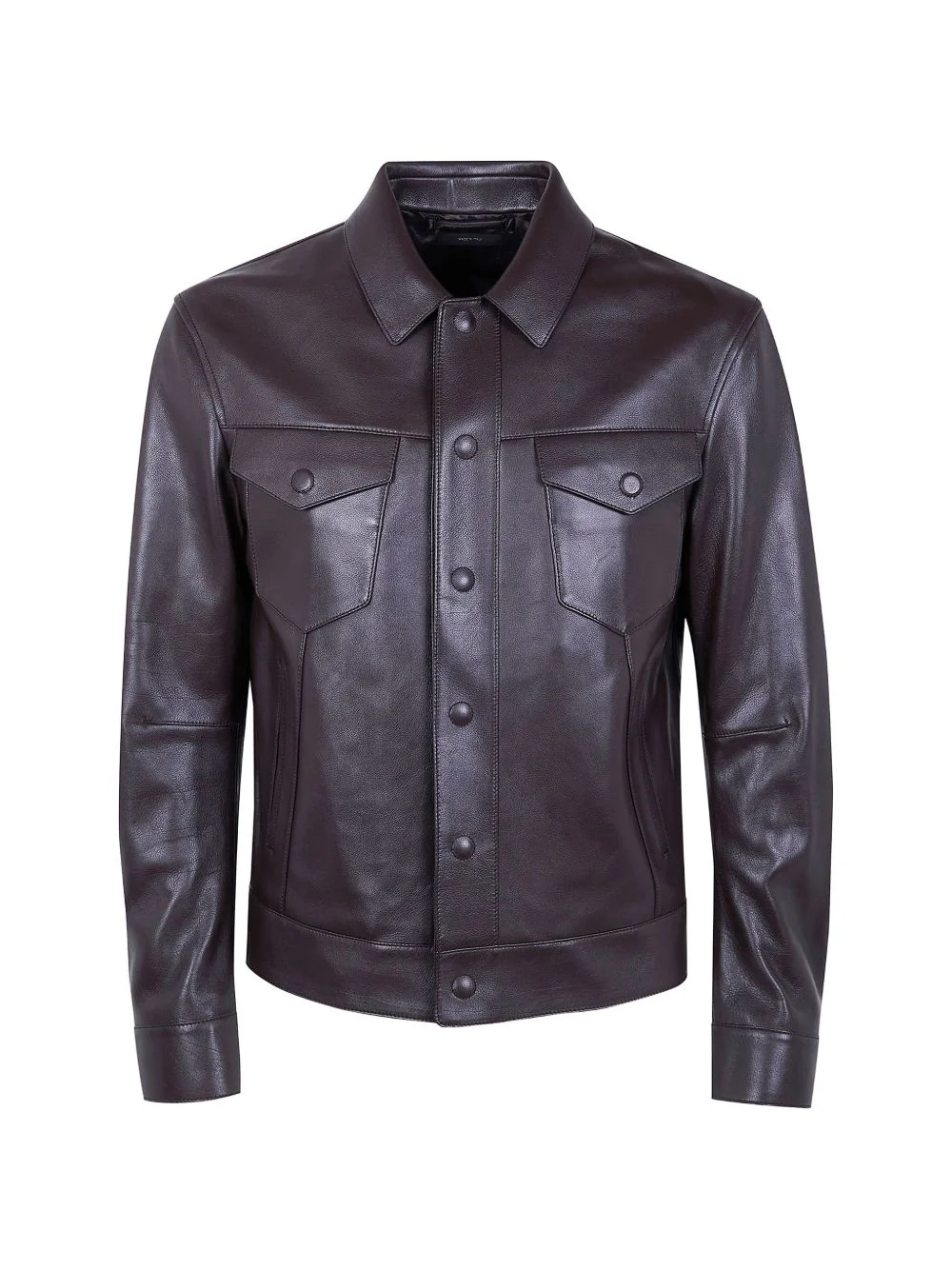 leather shirt jacket Highlights - Brown - Button fastening - Flap pockets - Buttoned cuffs - Point collar - Leather Imported Composition Calf Leather 100% Washing instructions Read Manufacturer Guidelines