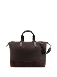 Suede-Trimmed Full-Grain Leather Weekend Bag Brown