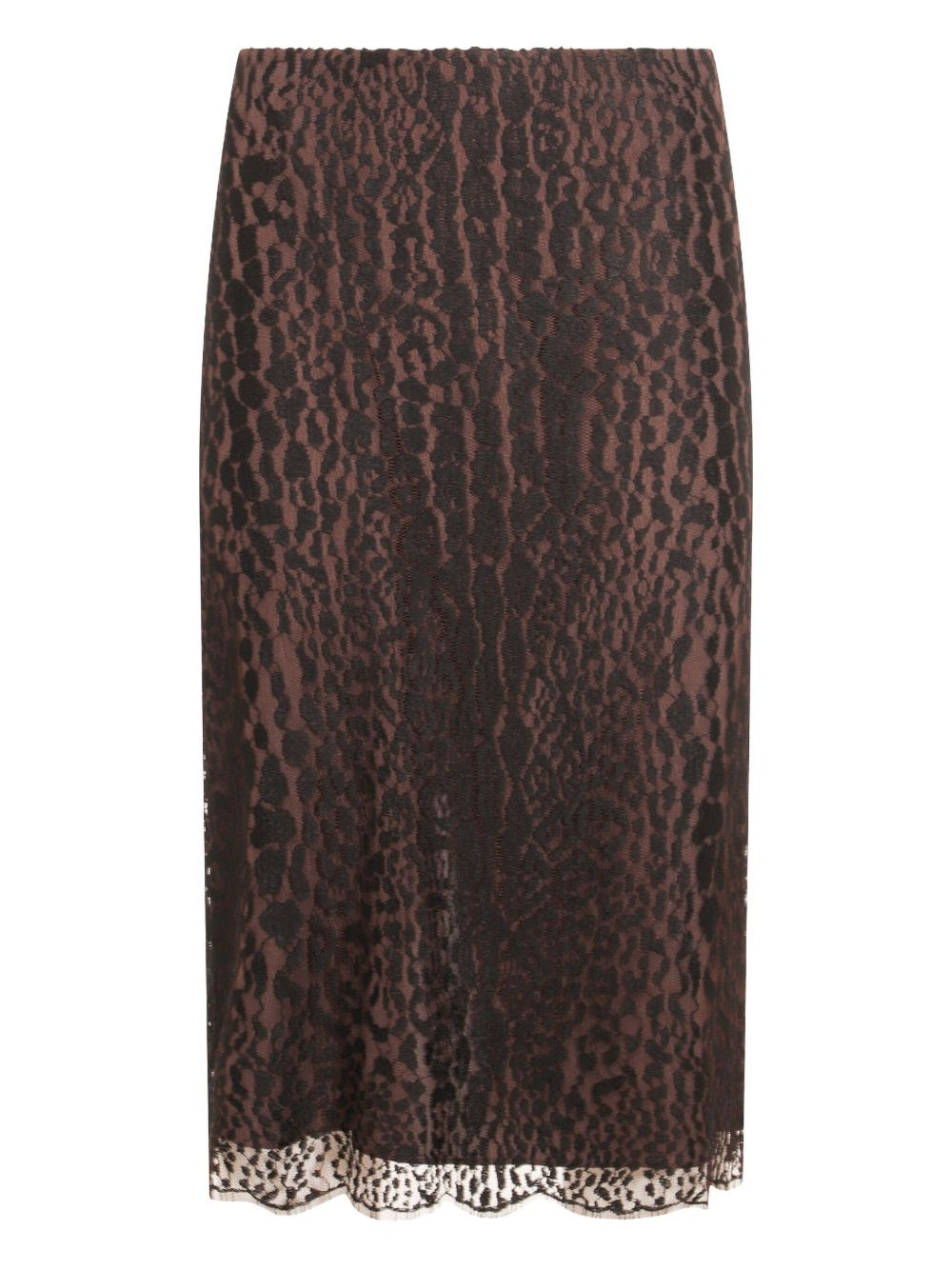 leopard-print lace skirt Highlights - Brown - Leopard-print - Lace hem - Back zip fastening - Centre back vent Made in Italy Composition Viscose 81%, Polyamide 19% Washing instructions Read Manufacturer Guidelines