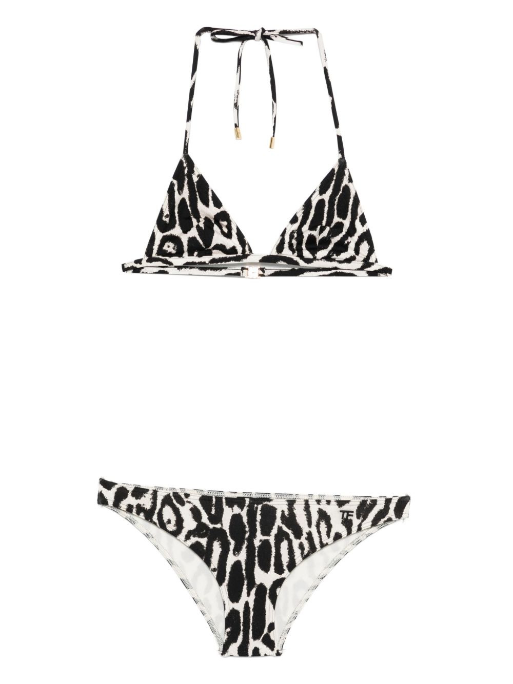 leopard-print triangle bikini Highlights - Beige - Black leopard print - Triangle top - Halterneck - Tie fastening - Be mindful to try on swimwear over your own garments. Made In Italy Composition Outer: Polyamide 74%, Elastane 26% Lining: Polyamide 82%, Elastane 18% Washing instructions Hand Wash