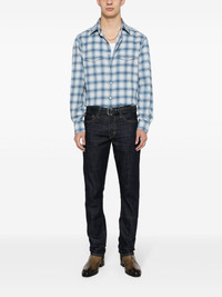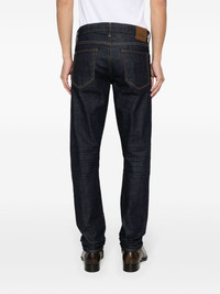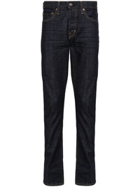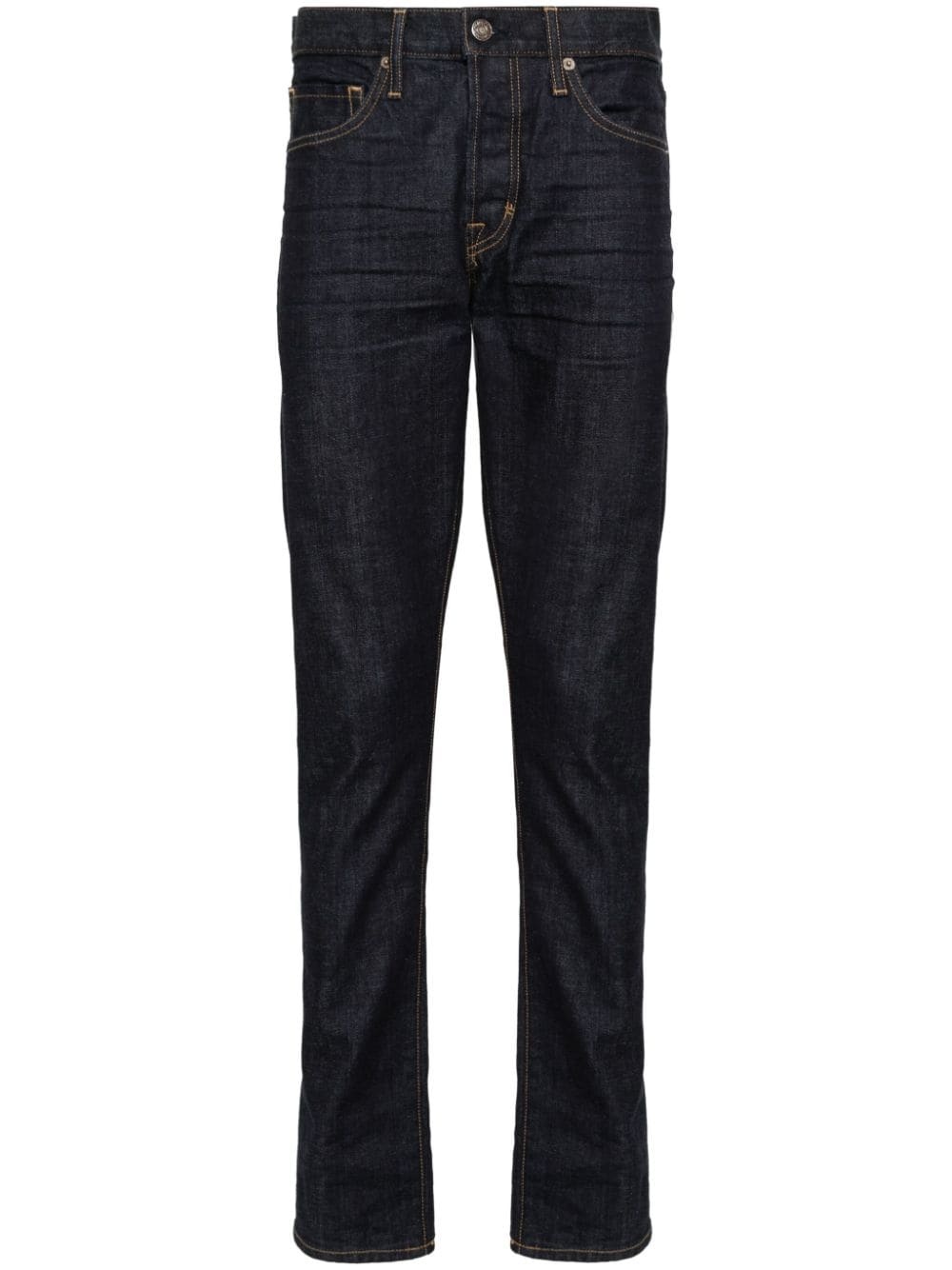 logo-patch slim-fit jeans Rendered in a blue hue, these jeans are adorned with TOM FORD's leather logo patch to the rear. The brown branded patch stands out against denim, lending a recognisable touch to the pair. Highlights - Indigo blue - Cotton - Denim - Slim cut - Contrast stitching - Belt loops - Classic five pockets - Logo patch to the rear - Button fly fastening Made in Italy Composition Lining: Cotton 100% Outer: Cotton 98%, Polyurethane 2% SIZE & FIT Model measurements Height 6 ft 1 in(1.86 m) Bust/Chest 36.61 in(93 cm) Hips 37 in(94 cm) Waist 28.74 in(73 cm) Measurement FRONT RISE 10.82 in(27.5 cm) INSIDE LEG 33.46 in(85 cm) HIPS 37.79 in(96 cm) FittingInformation Designed for a slim fit, these jeans offer a comfortable fit that sits just away from the leg Constructed from stretch denim, this piece offers a stretch fit with durability This piece fits true to size – take your usual size Washing instructions Machine Wash