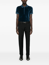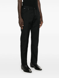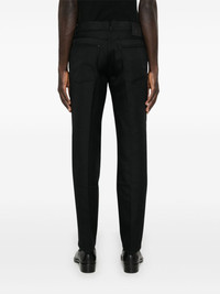 logo-patch trousers Highlights - Black - Twill weave - Mini logo tag to the front - Logo patch to the rear - Pressed crease - Belt loops - Classic five pockets - Front button fastening Made in Italy Composition Outer: Polyester 53%, Virgin Wool 47% Lining: Cotton 100% SIZE & FIT Model measurements Height 6 ft 2 in(1.87 m) Bust/Chest 36.41 in(92.5 cm) Hips 37 in(94 cm) Waist 29.52 in(75 cm) FittingInformation Designed for a straight-leg, allowing for an unrestricted and comfortable fit over the leg Made from a midweight non-stretch fabric This piece fits true to size – take your usual size