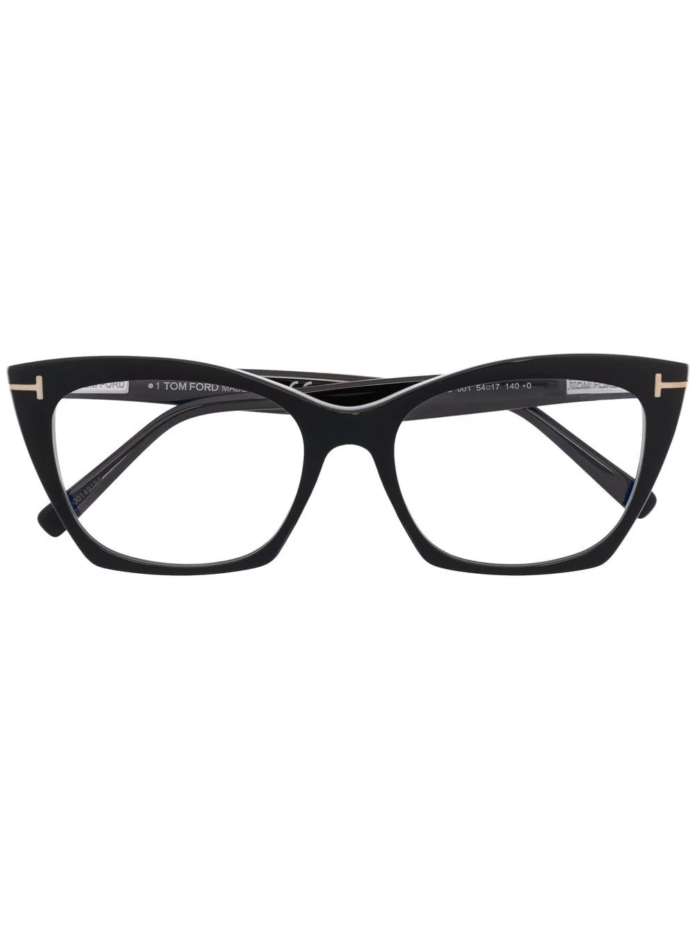logo-plaque cat-eye glasses Tom Ford Eyewear's glasses offer a masterclass in refined elegance. Designed with a sleek cat-eye frame, this all-black pair is finished with the brand's discreet gold logo plaque at the corners and arms. Made in Italy Composition Acetate 100% SIZE & FIT Measurement Arm Length 5.51 in(14 cm) Bridge Width 0.66 in(1.7 cm) Lens Diameter 2.12 in(5.4 cm) Total Width 5.78 in(14.7 cm)