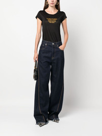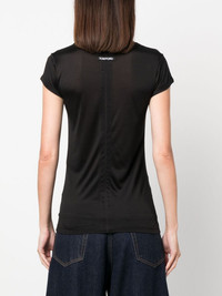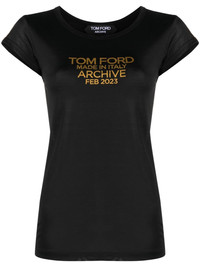 logo-print silk T-shirt TOM FORD presents the classic branded T-shirt with a twist. Crafted from silk, it ensures a silky smooth feel. Highlights - Black/gold-tone - Silk - Logo print to the front - Crew neck - Short sleeves Made in Italy Composition Silk 100% SIZE & FIT Model measurements Height 5 ft 10 in(1.78 m) Bust/Chest 33.46 in(85 cm) Hips 36.22 in(92 cm) Waist 23.22 in(59 cm) FittingInformation Designed for a slim fit that sits just away from the body offering a close yet comfortable fit Made from a lightweight non-stretch fabric, this piece offers minimal elasticity when worn This piece fits true to size – take your usual size Measurement SLEEVE LENGTH 2.99 in(7.6 cm) LENGTH 22.99 in(58.4 cm) WAIST 27 in(68.6 cm) BUST 27 in(68.6 cm) Washing instructions Hand Wash
