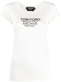 logo-print silk T-shirt Part of the final collection created by the eponymous founder, this TOM FORD T-shirt is a recreation of one of the designer’s favourite archival looks. Spun from sumptuous silk, the off-white design is emblazoned with the collection's logo across the front. Highlights - White - Silk - Crew neck - Logo print to the front - Short sleeves - Logo patch to the rear - Straight hem Made in Italy Composition Silk 100% SIZE & FIT Model measurements Height 5 ft 9 in(1.76 m) Bust/Chest 31.1 in(79 cm) Hips 35.03 in(89 cm) Waist 24.4 in(62 cm) FittingInformation Designed for a slim fit that sits just away from the body offering a close yet comfortable fit Made from a lightweight non-stretch fabric, this piece offers minimal elasticity when worn This piece fits true to size – take your usual size Measurement SLEEVE LENGTH 3.5 in(8.9 cm) LENGTH 23.5 in(59.7 cm) WAIST 29.01 in(73.7 cm) BUST 29.01 in(73.7 cm) Washing instructions Hand Wash