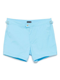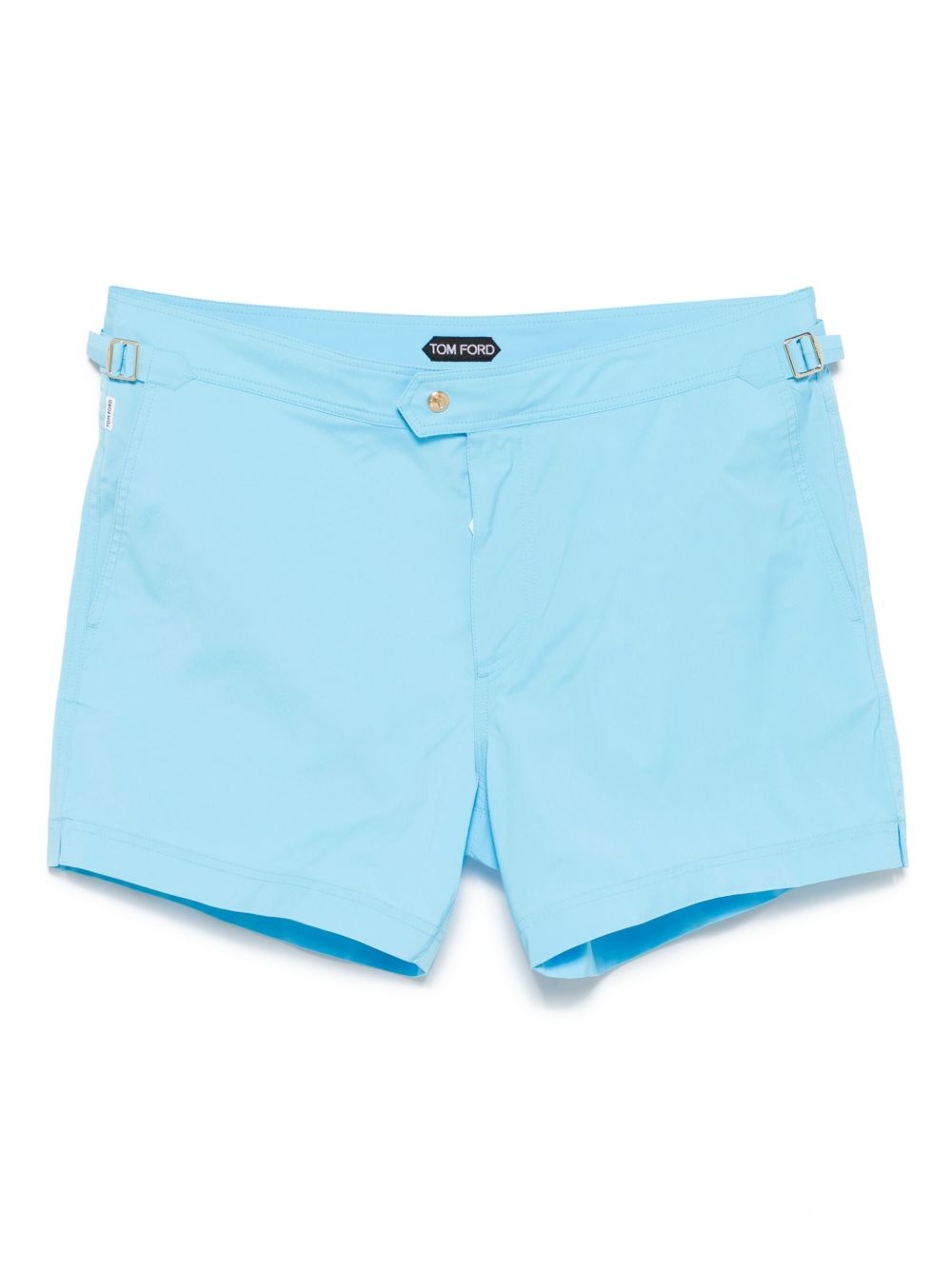 logo-tag swim shorts Highlights - Light blue - Concealed front fastening - Two diagonal pockets to the sides - Rear zip-fastening pocket - Be mindful to try on swimwear over your own garments. Made in Italy Composition Polyester 100%