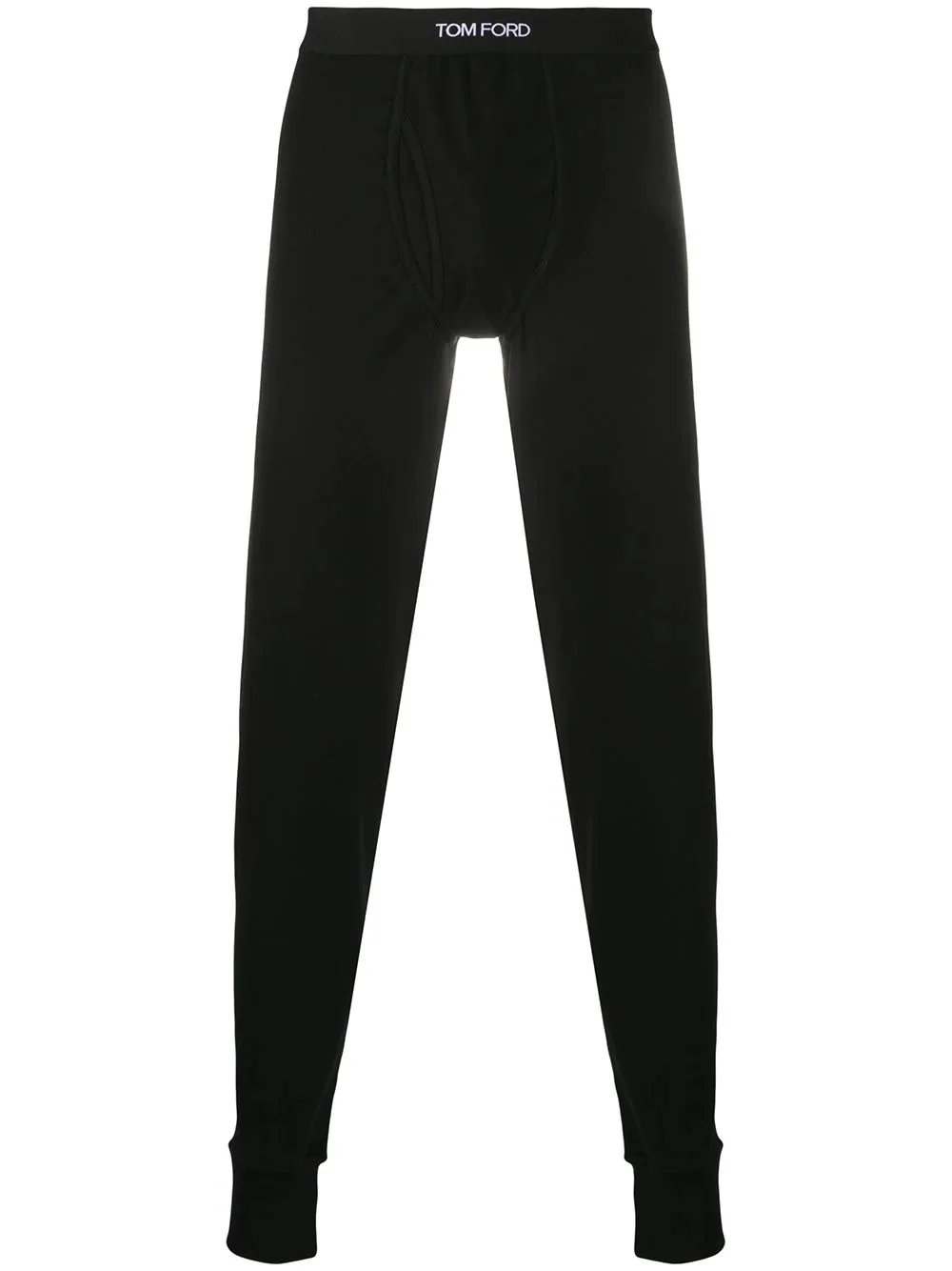 logo waistband long johns Maintaining a sense of practicality, Tom Ford presents these black long johns. Proudly showcasing its logo on the waistband, this design expertly combines functionality with style. Highlights - Black - Cotton-blend - Logo waistband - Stretch-design - High waist - Just a reminder that this piece must be tried on over your own garments. Made in Italy Composition Cotton 95%, Spandex/Elastane 5% Washing instructions Machine Wash