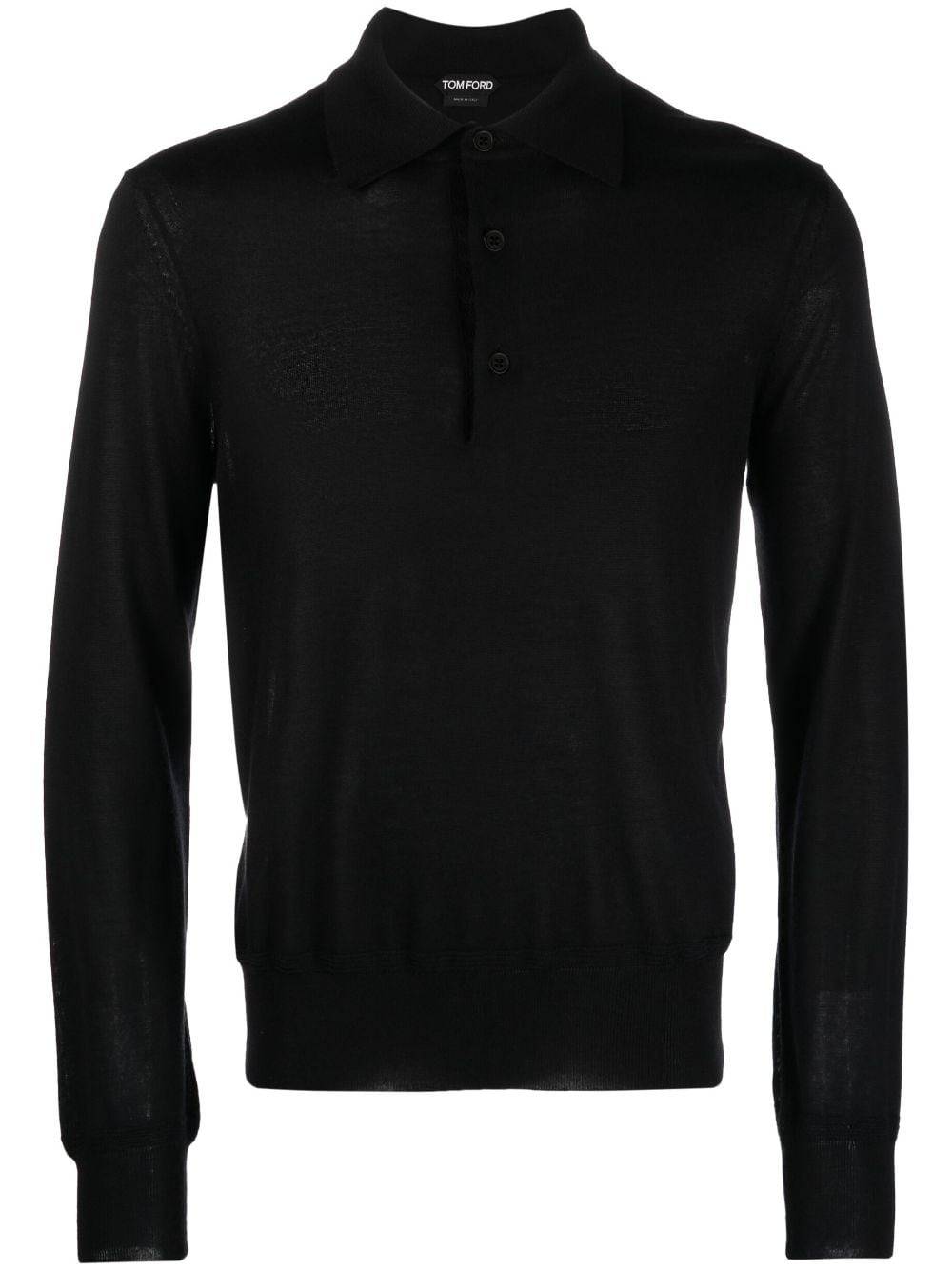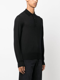 long-sleeve knitted polo shirt Highlights - Black - Cashmere-silk blend - Knitted construction - Polo collar - Short front button fastening - Long sleeves - Ribbed cuffs and hem - Straight hem Made in Italy Composition Outer: Cashmere 70%, Silk 30% SIZE & FIT Model measurements Height 6 ft 2 in(1.87 m) Bust/Chest 38.18 in(97 cm) Hips 36.61 in(93 cm) Waist 29.13 in(74 cm) FittingInformation Designed to be unstructured, offering a loose fit throughout Made from a midweight non-stretch fabric, this piece offers minimal elasticity when worn This piece fits true to size – take your usual size Washing instructions Dry Clean Only