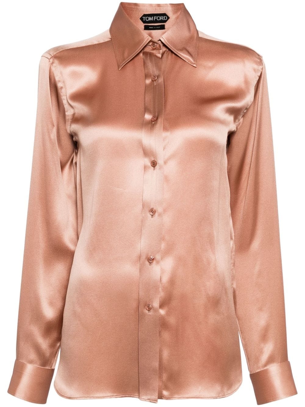 long-sleeved silk-satin shirt Highlights - Blush beige - Silk satin - Classic collar - Front button fastening - Long sleeves - Buttoned cuffs - Curved hem Made in Italy Composition Silk 100%