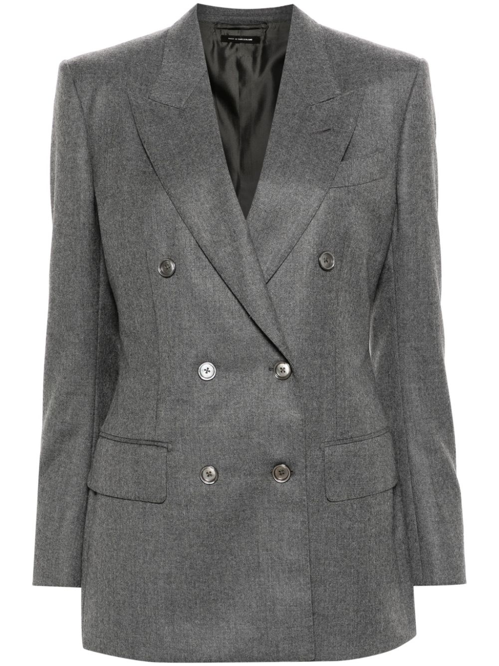 melange double-breasted blazer Highlights - Grey - Wool - Interlock twill weave - Melange effect - Dart detailing - Peak lapels - Double-breasted button fastening - Shoulder pads - Long sleeves - Buttoned cuffs - Chest welt pocket - Two front flap pockets - American rear vent - Straight hem - Satin lining Made in Italy Composition Lining: Cupro 59%, Silk 41% Outer: Wool 100% SIZE & FIT Model measurements Height 5 ft 10 in(1.78 m) Bust/Chest 33.07 in(84 cm) Hips 36.61 in(93 cm) Waist 24.8 in(63 cm) FittingInformation Designed for a slim fit that sits just away from the body offering a close yet comfortable fit The internal shoulder pads offer a structured shape Made from a midweight non-stretch fabric This piece fits true to size – take your usual size