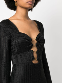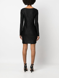 metallic heart-neck minidress Highlights - Black - Virgin wool-cotton blend - Gold-tone hardware - Small hoop design - Metallic threading - Cut-out detailing - Concealed side zip fastening - Sweetheart neck - Long sleeves - Straight hem Made in Italy Composition Cotton 55%, Virgin Wool 32%, Polyester 13% SIZE & FIT Model measurements Height 5 ft 10 in(1.78 m) Bust/Chest 32.67 in(83 cm) Hips 35.43 in(90 cm) Waist 23.22 in(59 cm) FittingInformation Designed for a close fit throughout Made from a midweight non-stretch fabric, this piece offers minimal elasticity when worn This piece fits true to size – take your usual size Washing instructions Dry Clean Only