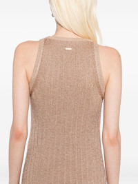 metallic-threading midi dress Highlights - Gold-tone - Metallic threading - Sleeveless - Scoop neck Made in Italy Composition Polyester 64%, Lurex 33%, Polyamide 2%, Elastane 1% SIZE & FIT Model measurements Height 5 ft 9 in(1.76 m) Bust/Chest 31.1 in(79 cm) Hips 35.03 in(89 cm) Waist 24.4 in(62 cm) FittingInformation Designed for a close fit throughout Made with a midweight knit, this piece offers some stretch Washing instructions Dry Clean Only