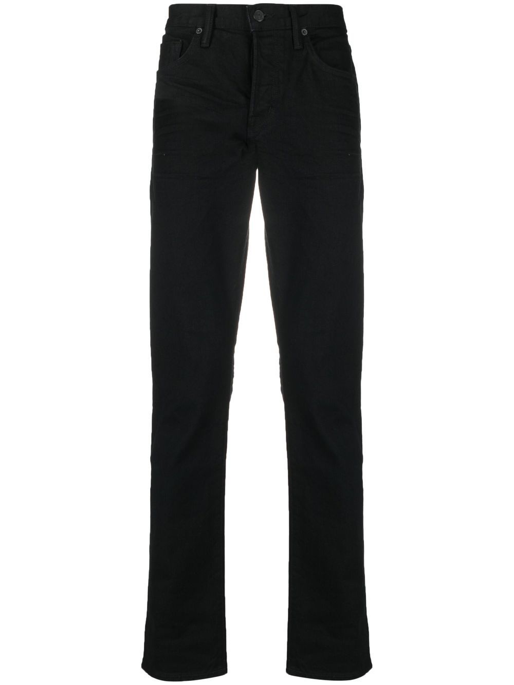 mid -rise slim-fit jeans These mid-rise jeans from Tom Ford reflect the brand's casual style, thanks to a slim cut and tonal stitching. Highlights - Black - Cotton blend - Mid-rise - Logo-engraved buttons - Mini logo tag - Logo patch to the rear - Tonal stitching - Belt loops - Front button fastening - Classic five pockets - Slim cut Made in United States Composition Outer: Cotton 98%, Polyurethane 2% Lining: Polyester 65%, Cotton 35% SIZE & FIT Model measurements Height 6 ft 1 in(1.85 m) Bust/Chest 35.82 in(91 cm) Hips 37.79 in(96 cm) Waist 29.13 in(74 cm) FittingInformation This piece fits true to size. We recommend you get your regular size Cut for a slim fit Made with a mid-weight non-stretch fabric Washing instructions Machine Wash
