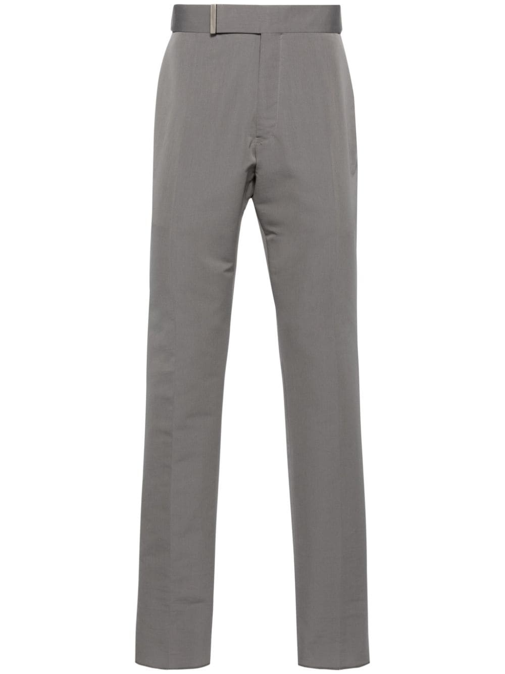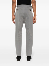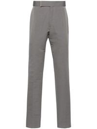 mid-rise tailored trousers Highlights - Grey - Cotton-silk blend - Interlock twill weave - Pressed crease - Mid-rise - Belt loops - Waist tabs - Concealed front fastening - Two side slit pockets - Two rear button-fastening jetted pockets - Tailored cut - Tapered leg Made in Italy Composition Outer: Cotton 60%, Silk 40% Lining: Cupro 100% SIZE & FIT Model measurements Height 6 ft 2 in(1.87 m) Bust/Chest 36.22 in(92 cm) Hips 37 in(94 cm) Waist 27.95 in(71 cm) FittingInformation Designed for a slim tapered leg, offering a close fit that sits just away from the leg with a closer fit towards the ankle The adjustable tabs allow for fitted preferences Made from a midweight non-stretch fabric This piece fits true to size – take your usual size
