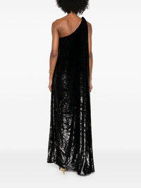 SILK BLEND VELVET LAME' ONE SHOULDER EVENING DRESS