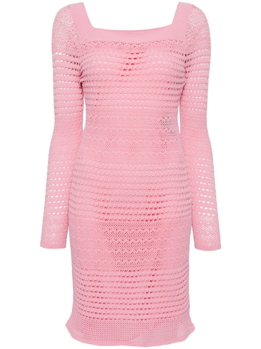 open-knit square-neck minidress Highlights - Flamingo pink - Stretch-design - Open knit - Ribbed trim - Square neck - Long sleeves - Thigh-length - Straight hem - Detachable slip dress Made in Italy Composition Outer: Viscose 70%, Polyester 24%, Polyamide 6% Body: Viscose 70%, Polyester 24%, Polyamide 6%